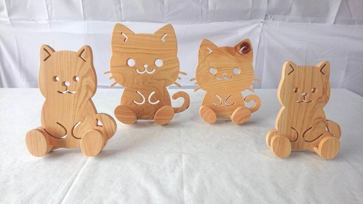 可愛らしい猫のシルエットが癒してくれる、木製の写真立て&スマホスタンドです。